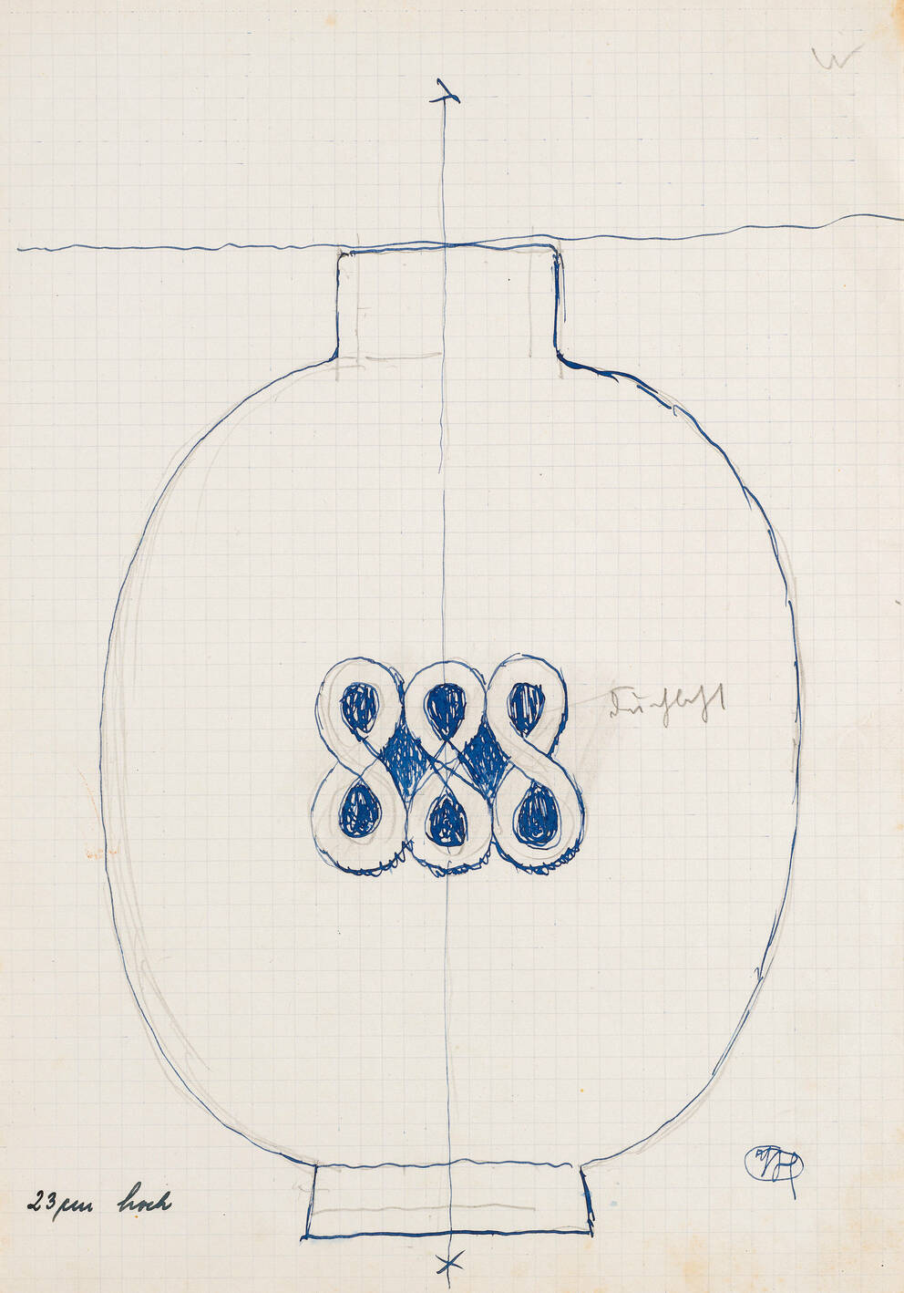 Every object designed by Josef Hoffmann (1870–1956), whether tin, flacon, chalice or lamp base, is characterized by the artist’s meticulously precise but at the same time sensual and playful esthetic awareness with which he ran through forms. Born in the Moravian town of Pirnitz (present-day: Brtnice/Czech Republic), Hoffmann pursued the notion of bettering the world through beauty with obsessive consistency – an idea that was reflected in the concept of the Gesamtkunstwerk, or universal work of art. Every singly object in the households of his commissioners was to fit in with the greater ensemble, and was to be of the highest artistic quality. This aspiration is palpable in all of Hoffmann’s designs, which show his ability as a confident and exact freehand draftsman. They not only illustrate his masterful handling of antique practices such as fluting, which he often invoked as variations, but also his skill as a formalist. Hoffmann designed his objects as if he were dealing with architecture.