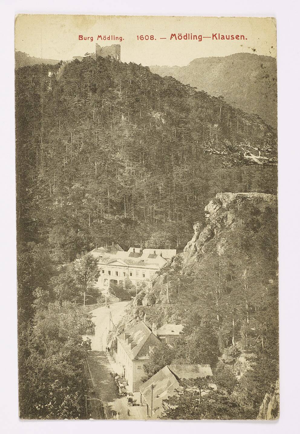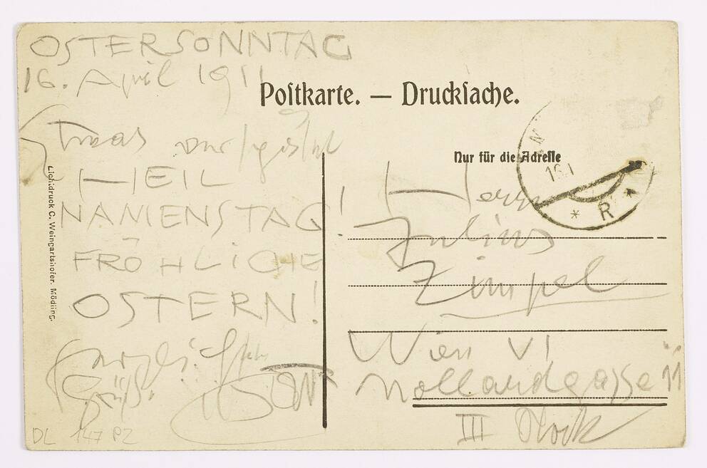 Postcard from Gustav Klimt to Julius Zimpel “ “Heil“ Name Day“, (Burg Mödling. 1608. – Mödling–Klausen)