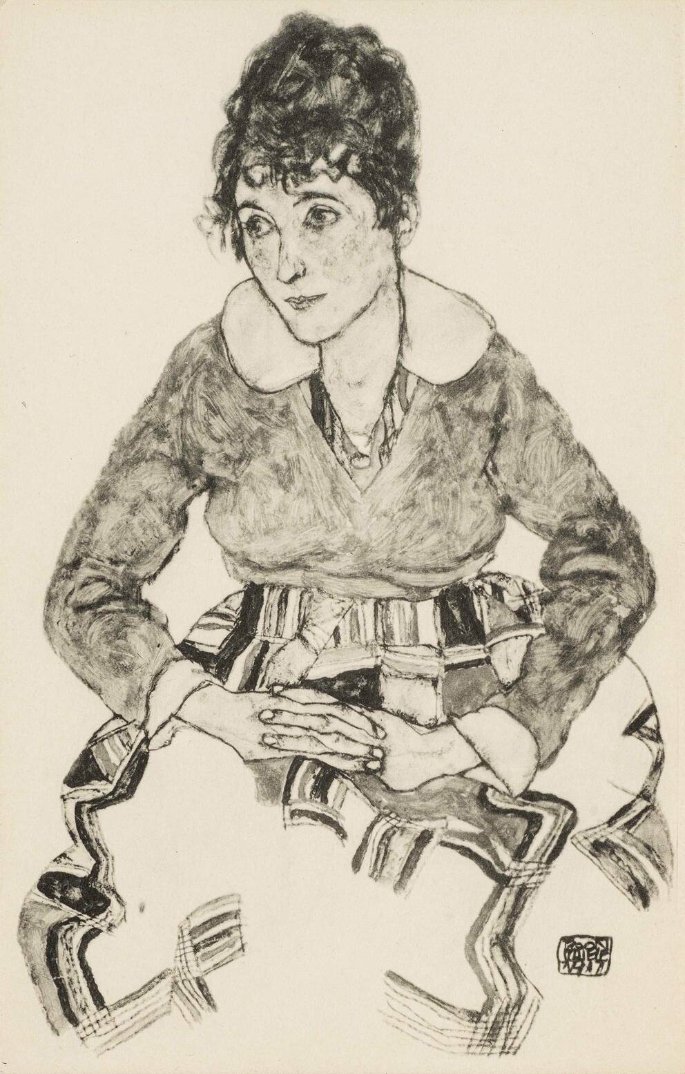 Postcard with Motif by Egon Schiele: Portrait Edith Schiele, 1917