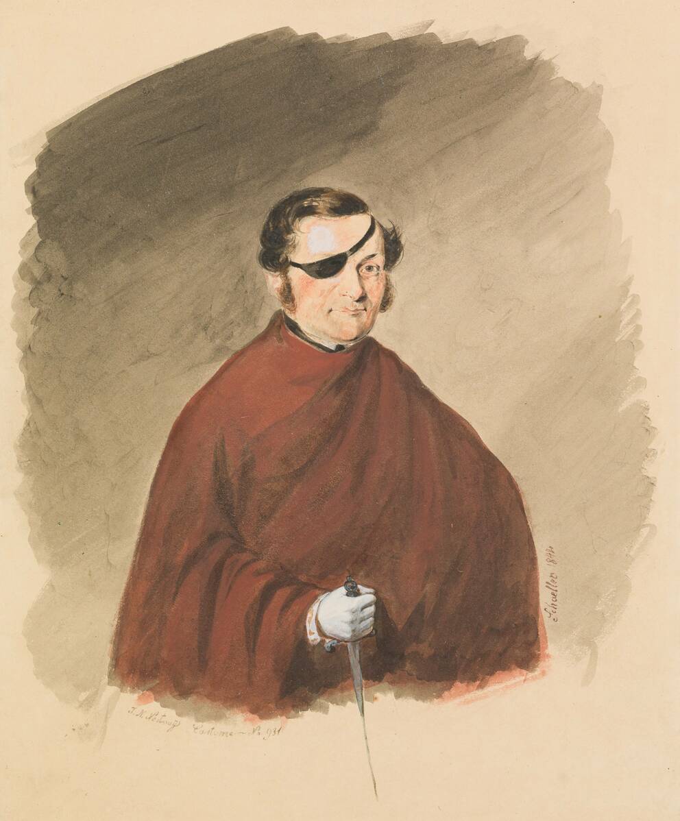 Johann Nepomuk Nestroy Posing as Sansquartier in the Vaudeville Comedy 12 Girls in Uniform by Louis Angely
