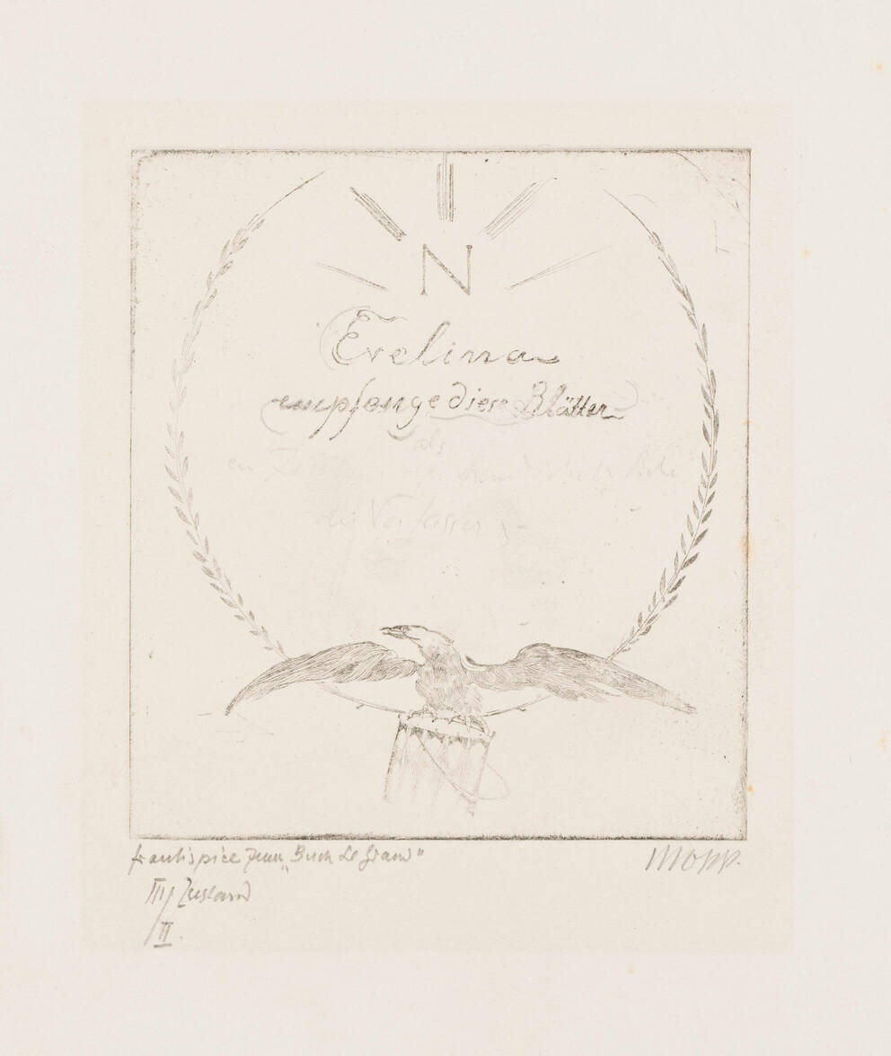 “Frontispiece”, 2nd/3rd State. Design for the Portfolio Ten Etchings for Heinrich Heine’s Book Le Grand