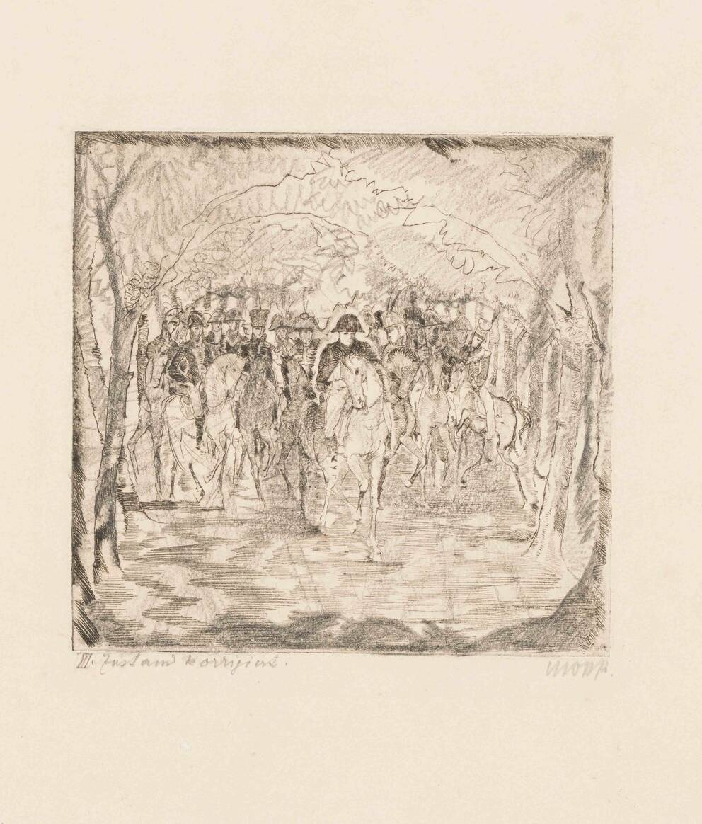 “In the Court Garden in Düsseldorf”, 3rd State. Design for the Portfolio Ten Etchings for Heinrich Heine’s Book Le Grand