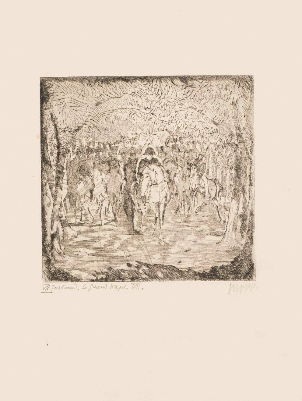 “In the Court Garden in Düsseldorf”, 7th State. Design for the Portfolio Ten Etchings for Heinrich Heine’s Book Le Grand