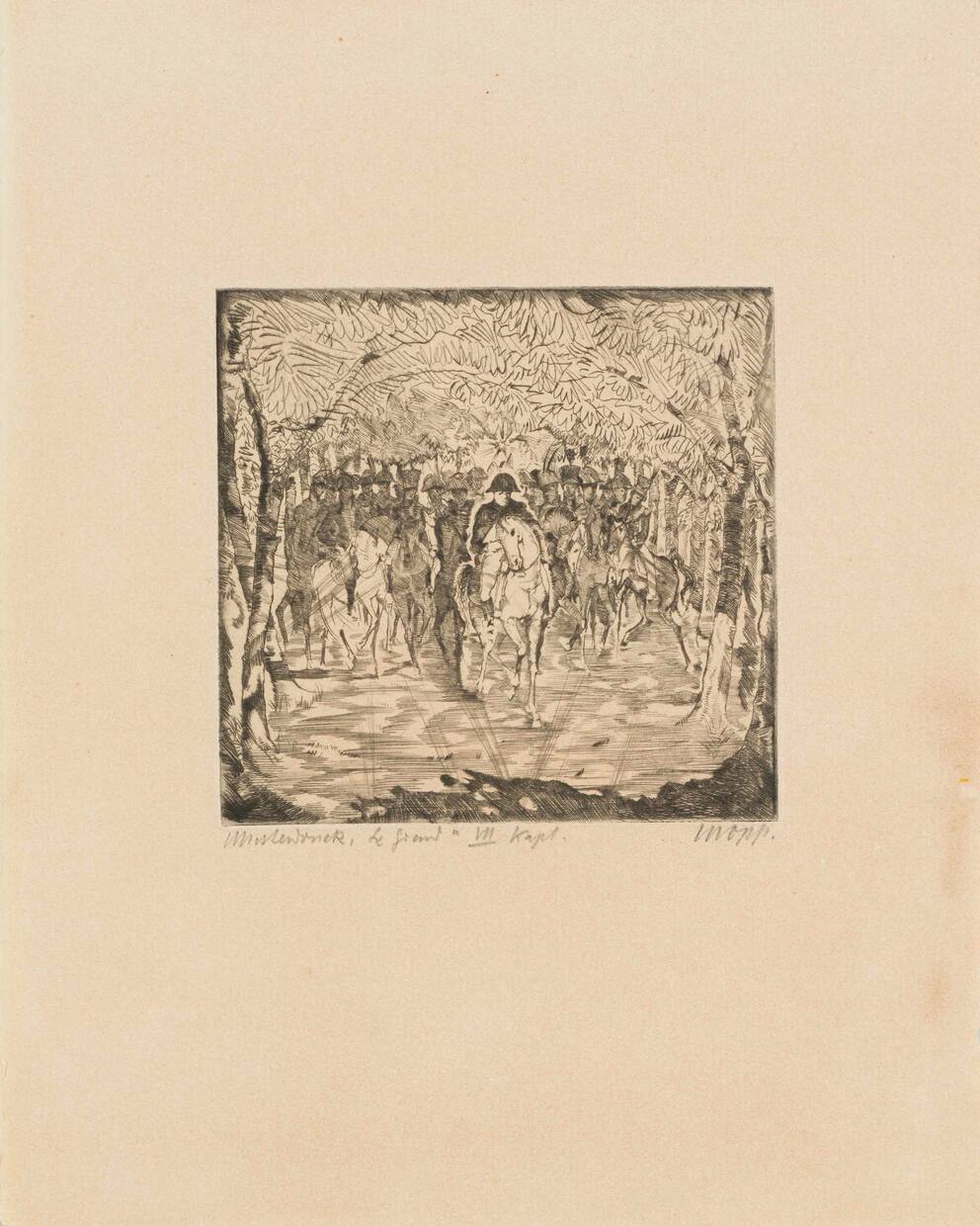 “In the court garden in Düsseldorf”, proof print. Design for the portfolio Ten Etchings for Heinrich Heine’s book Le Grand