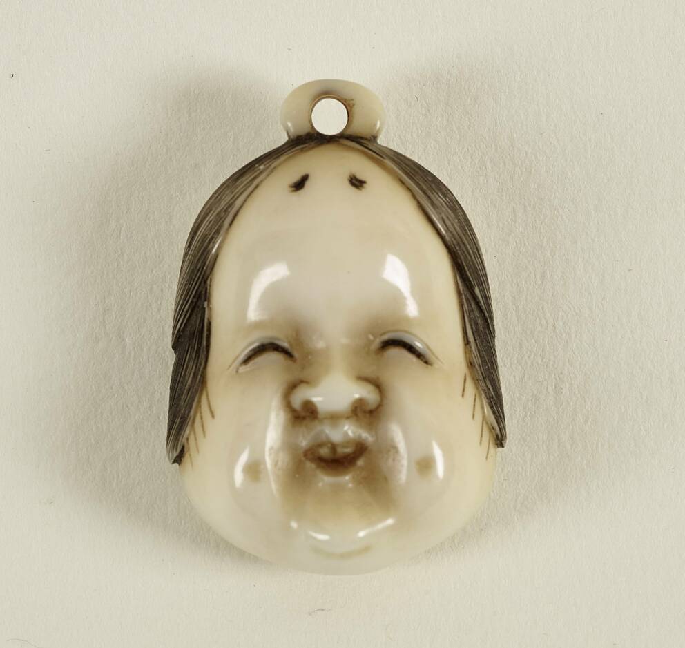 Netsuke: Masken-Anhänger der Okame [Göttin der Erschaffung der Welt]
