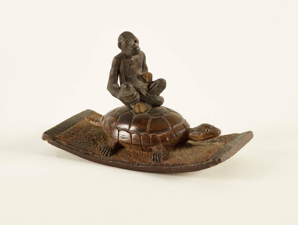 Tintenwiege in Form einer Schildkröte, auf der ein Affe sitzt