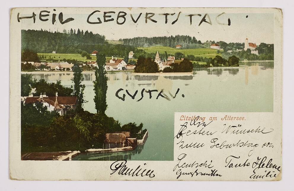 Correspondenz-Karte von Gustav Klimt an Julius Zimpel „Heil Geburtstag …“, (Litzlberg am Attersee)