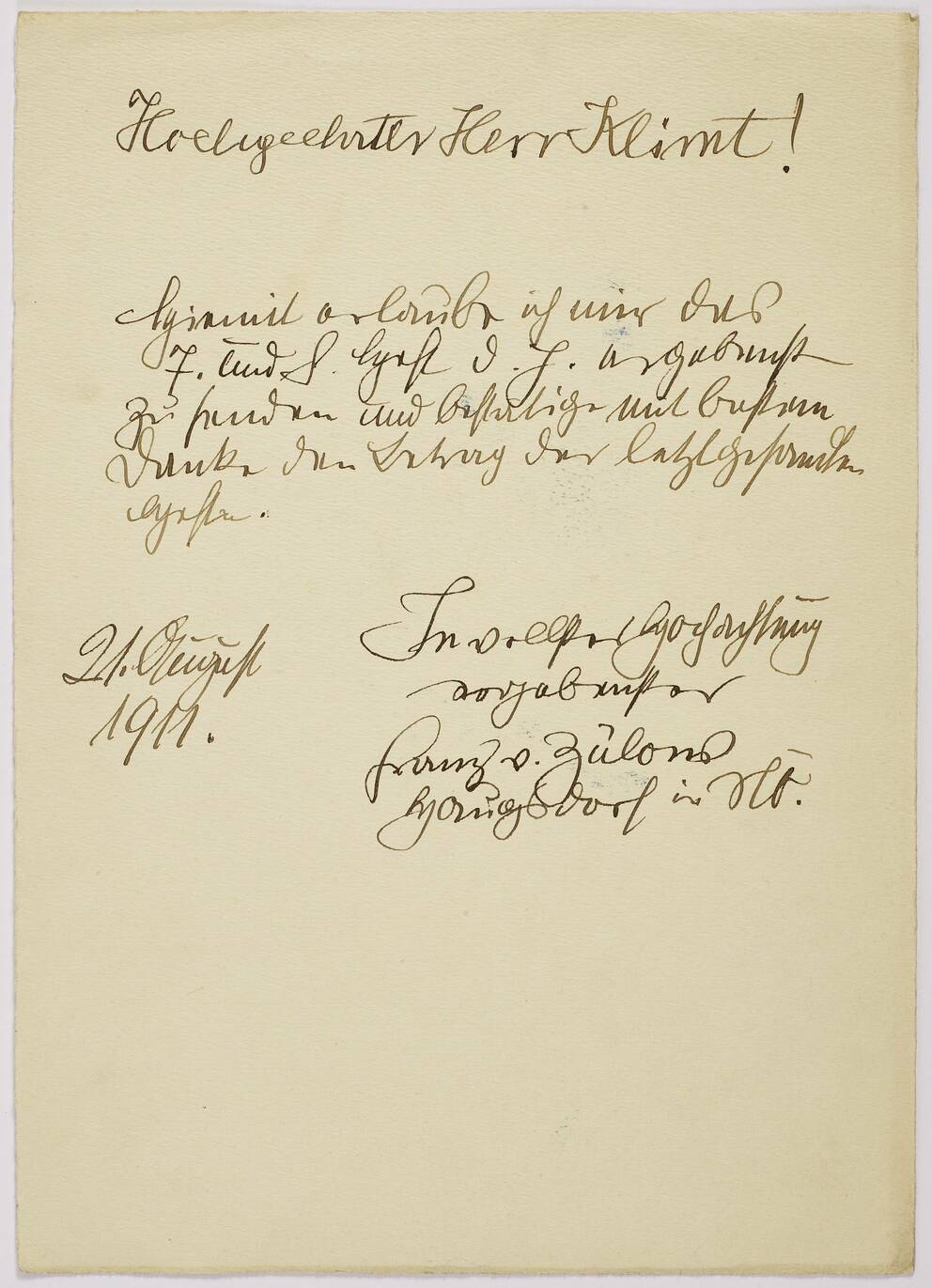 Brief von Franz Zülow an Gustav Klimt
