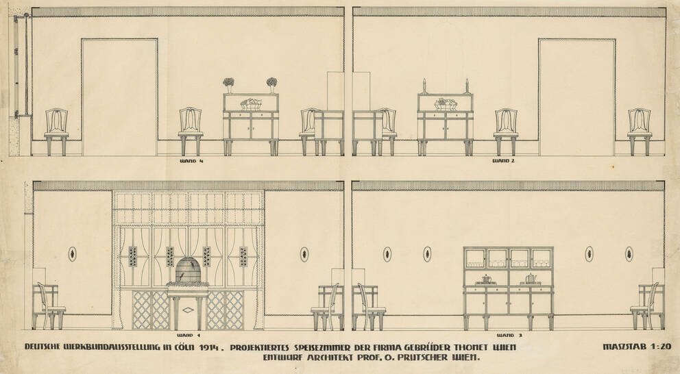 Entwurf: Speisezimmer der Firma Gebrüder Thonet für die Deutsche Werkbundausstellung in Köln 1914