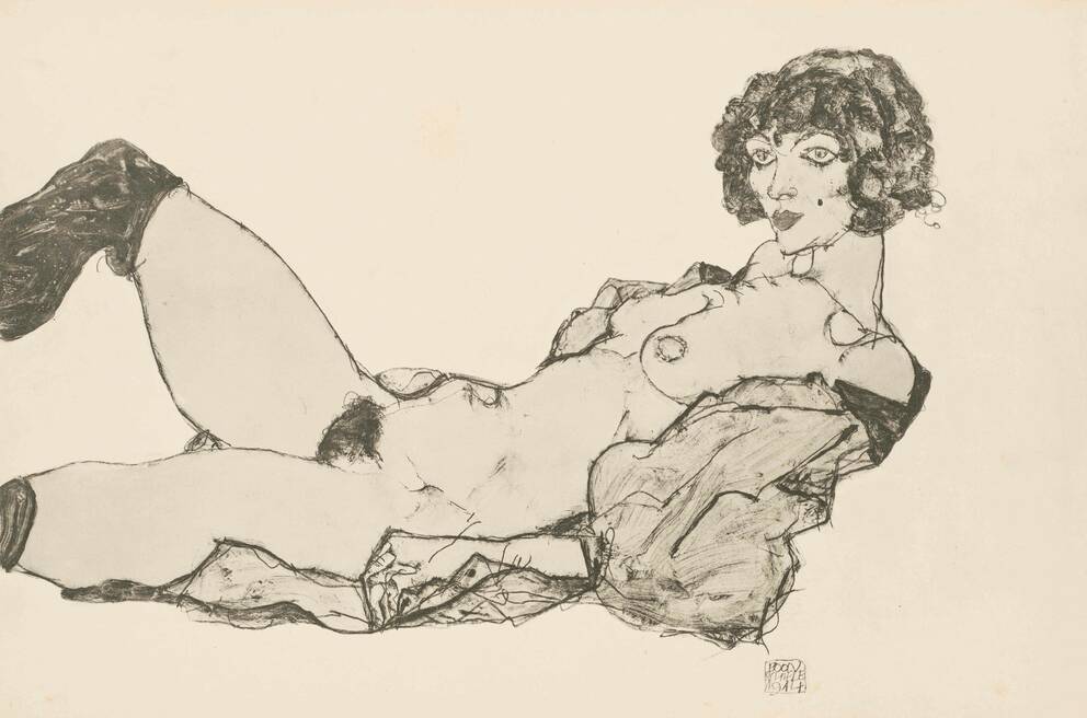 Liegender Akt mit grünen Strümpfen, 1914. Aus der Mappe Zeichnungen. Egon Schiele 1917, Blatt VI