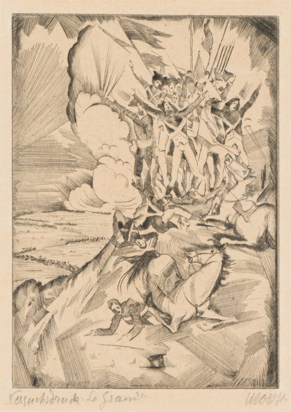 „Valmy, allons enfants”, Versuchsdruck. Entwurf zur Mappe Zehn Radierungen zu Heinrich Heines Buch Le Grand