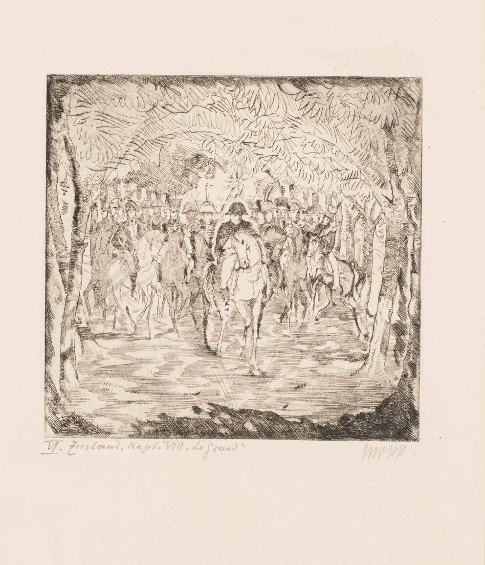 „Im Hofgarten zu Düsseldorf”, 6. Zustand. Entwurf zur Mappe Zehn Radierungen zu Heinrich Heines Buch Le Grand
