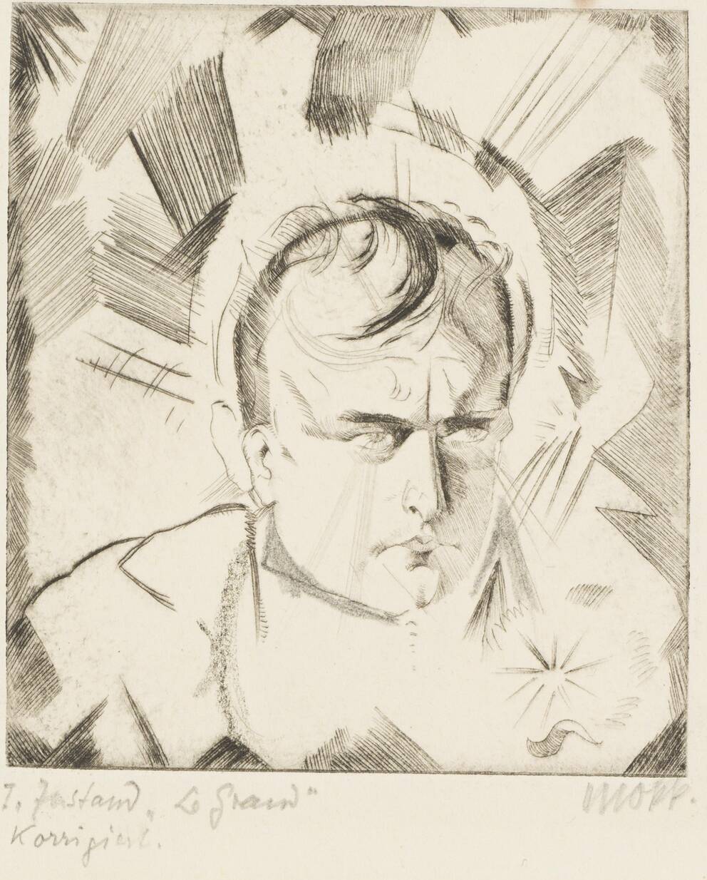„Lui“, 1. Zustand, korrigiert. Entwurf zur Mappe Zehn Radierungen zu Heinrich Heines Buch Le Grand
